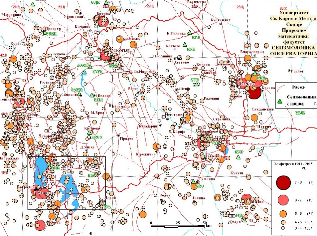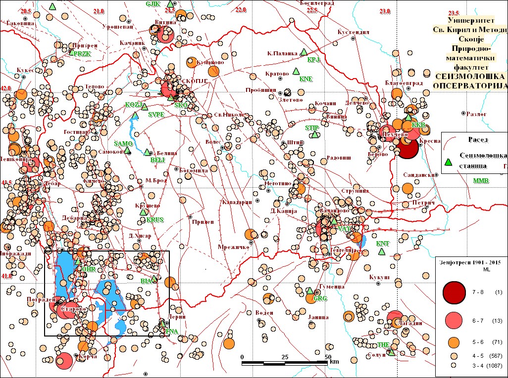Најсилна сеизмичност во Медитеранскиот регион со појава на катастрофални земјотреси е забележана во јужниот дел на Егејско Море (јужна Грција) од Пелопонез до Крит, потоа долж Северно-Анадолискиот расед во северозападна Турција и долж Калабриската зона во јужна Италија. Во овие подрачја се забележани многу силни земјотреси, како оној од 1903 година во Китера (проценети 8,2 степени по Рихтер), потоа земјотресот од 1926 година на Родос (7,8 степени по Рихтер-најсилниот инструментално забележан земјотрес во Европа), како и катастрофалниот земјотрес од 1999 година во Измит кај Истанбул (7,6 степени по Рихтер, кога загинаа повеќе од 17000 луѓе). Заради силниот судир на овие огромни континентални плочи (и неколку помали како Арабиската, Малоазиската и сл.), засегнат е и Балканскиот Полуостров. Тој е „раздробен“ на помали блокови, од кои некои се „нестабилни“ и од време на време ќе се затресат или занишаат за да постигнат привремена стабилност. На такви релативно нестабилни блокови лежи Валандовската, Скопската, Дебарската, Дојранската Котлина во Република Македонија, како и Косовската, Софиската, Струмската (посебно Кресненска) и други во соседството. Потврда за тоа се и силните земјотреси во овие подрачја кои достигнале и до 7 степени по Рихтер (Пехчево-Кресна), односно и до 10 степени според Европската макросеизмичка скала.