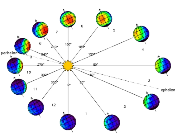 Денес, 4 јануари 2014 година, околу 13 часот, планетата Земја се наоѓа најблиску до Сонцето за 2014 година, во положба позната како перихел. Во тој момент, нивното взаемно растојание ќе изнесува околу 147 милиони км (0,98 AU), што е околу 2,5 милиони км помалку од просечната вредност, односно околу 5 милиони км помалку од максималното растојание (152 милиони км) познато како афел. Поради близината до Сонцето, во месецот јануари Земјата се движи околу 1 км/сек побрзо (30,3 км/сек) по својата патека отколку во јули, што е причина и за малку пократко траење на годишните времиња (зима на северната, а лето на јужната полутопка) во овој период. Иако би требало да се очекува помалото растојание да резултира со потопли јануарско-февруарски лета на јужната полутопка, тоа не е така заради многу понерамномерниот распоред на водата и копното. Сепак, има еден друг многу значаен ефект, а тоа е што количеството на УВ и други зрачења од Сонцето во овој период е поголемо за околу 7%. Тоа зголемување е доволно да предизвика значајни ефекти врз испарувањето на водата во Светскиот океан, влијаејќи врз глобалниот и регионалниот распоред на врнежи. Поради оштетувањето на озонските слоеви, перихелната положба во последно време понеповолно се одразува врз живите организми и човекот, главно преку намалување на имунолошкиот одговор или преку оштетување на кожата и очите. Затоа, без оглед што е зима, треба да се внимава на изложеноста на директното сончево зрачење, особено на повисоките планини!